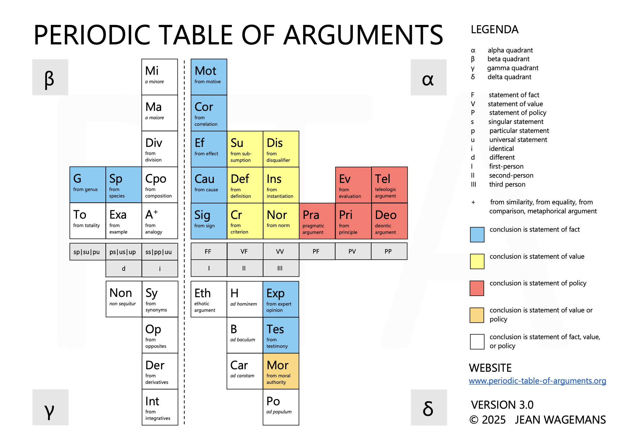 Most people are familiar with the Periodic Table of Elements, the chart that arranges all the building blocks of matter into a single, elegant framework. What if we could create something similar for arguments?